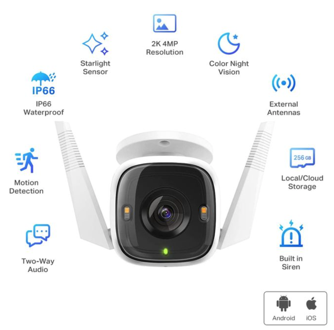 4 X TP-Link Caméra de Surveillance WiFi Couleur en Nuit Audio Tapo C320WS Outdoor ip 2K sans Fil 4MP COLOR qhd (Copie)